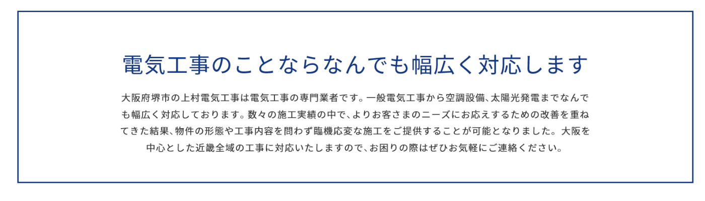 大阪府堺市を中心に、関西一円の電気工事を手掛けている上村電気工事です!