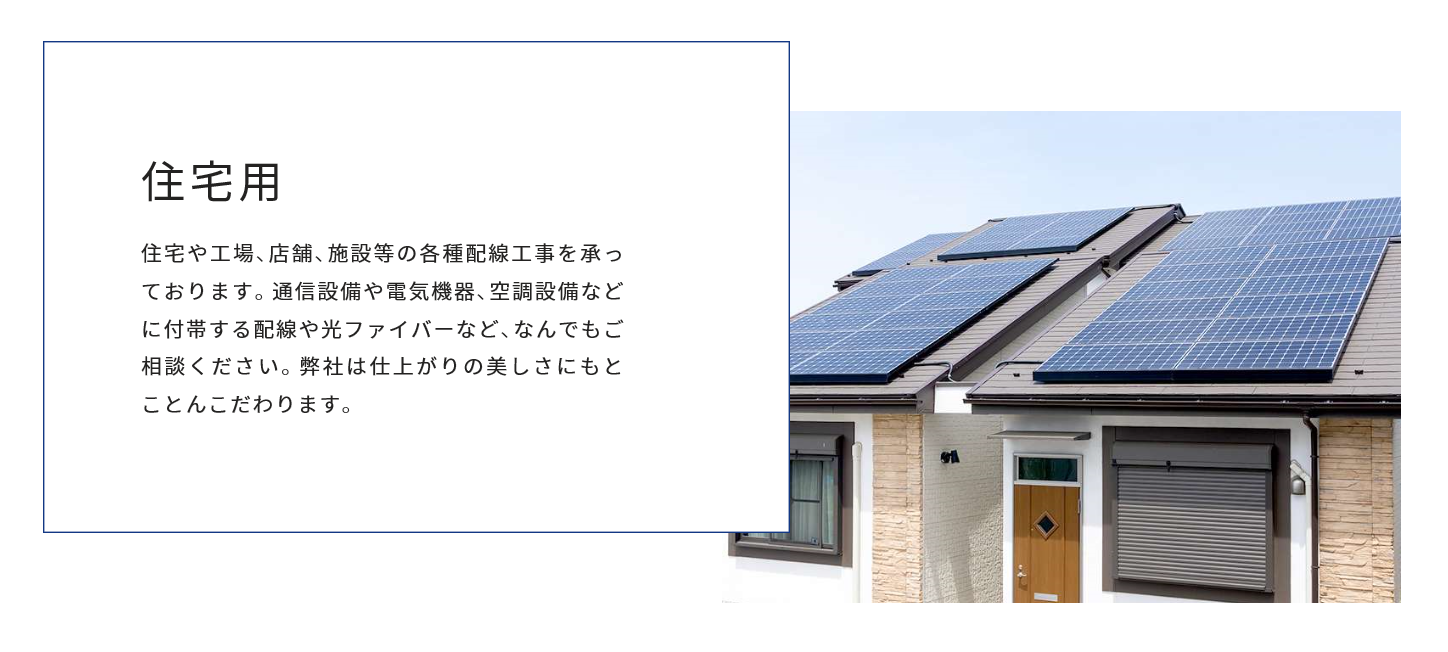 住宅などの低圧屋内配線工事、大規模な太陽光発電、